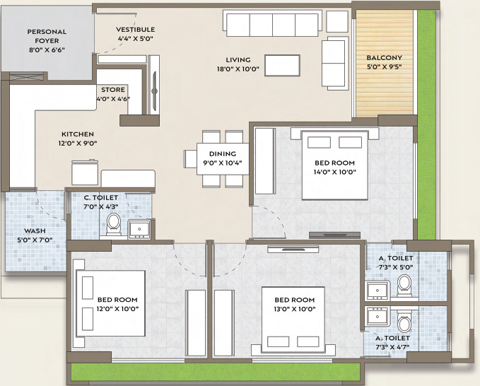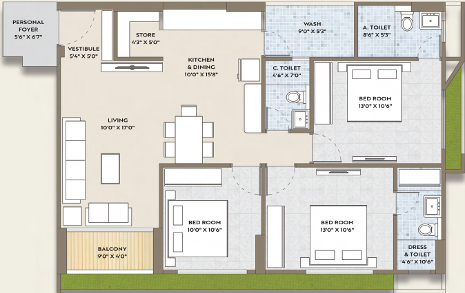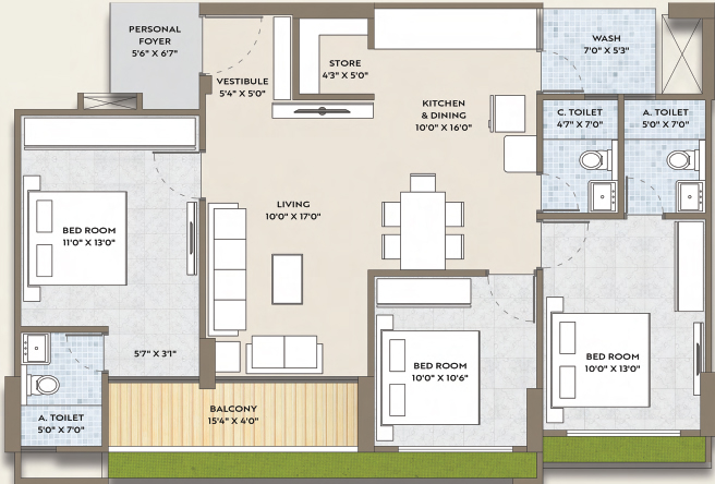 • Premium vitrified tiles flooring